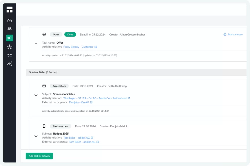 Our latest CRM update brings a host of features designed to save your sales team time and improve workflow efficiency. From task management to seamless email tracking, we’re focused on making goTom the ultimate tool for your team’s daily operations. Less manual work, more deal closing.